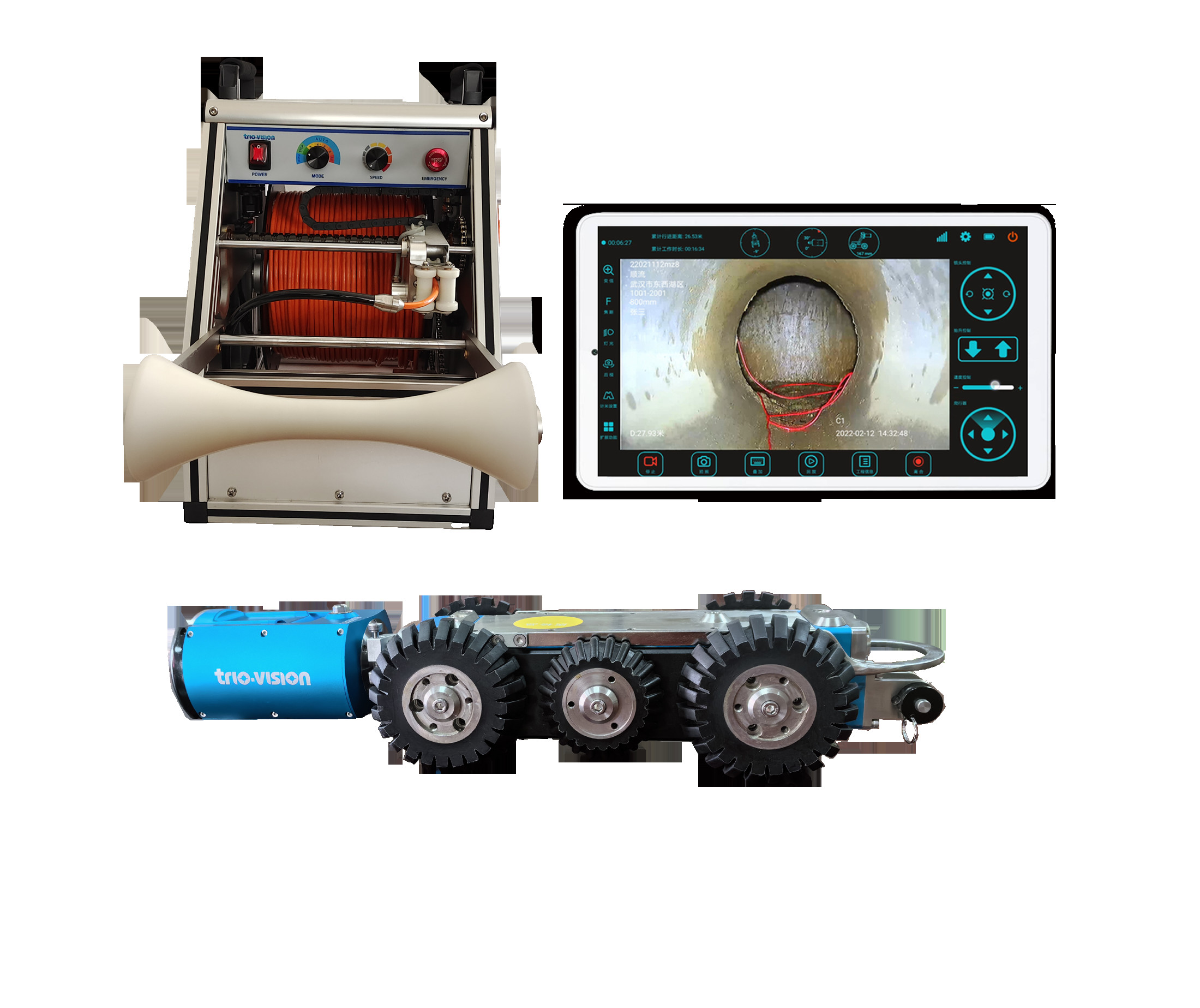 TVS-2000 è composto da cingolato, telecamera, avvolgicavo e unità di controllo. Il cingolato può abbinare diversi tipi di telecamere (ad es. telecamera pan & tilt, telecamera assiale, telecamera fish-eye) in base alle diverse esigenze, è adatto per tubi con diametro da 150-1500 mm.